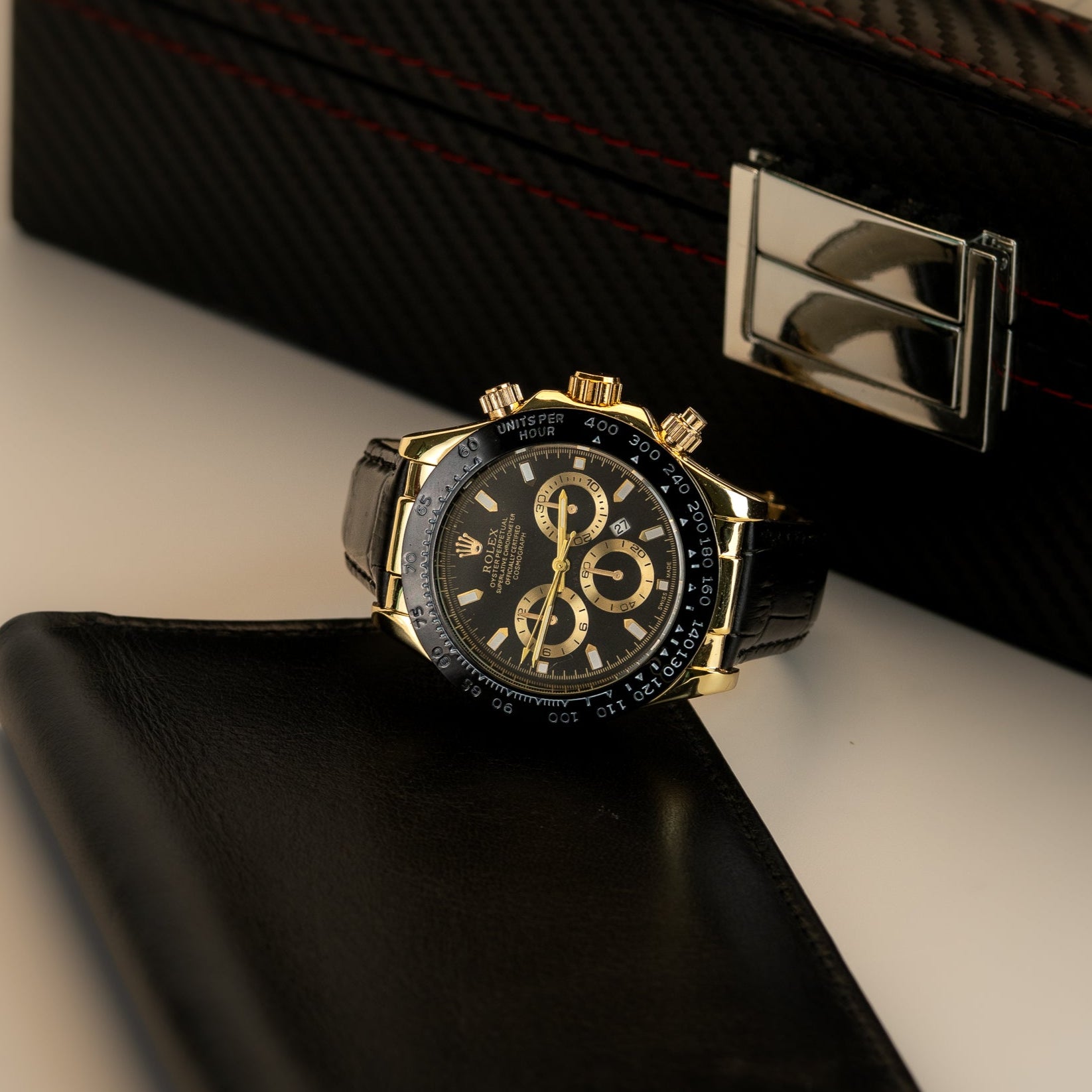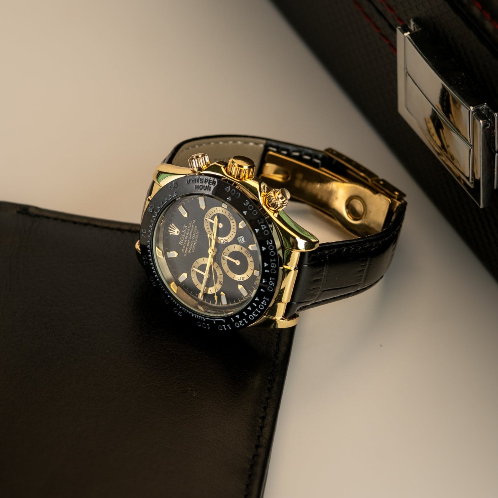 Rolex Daytona Leather Strap Black-Gold Dial
