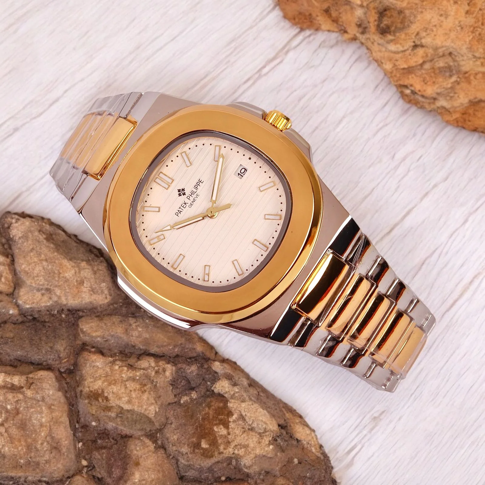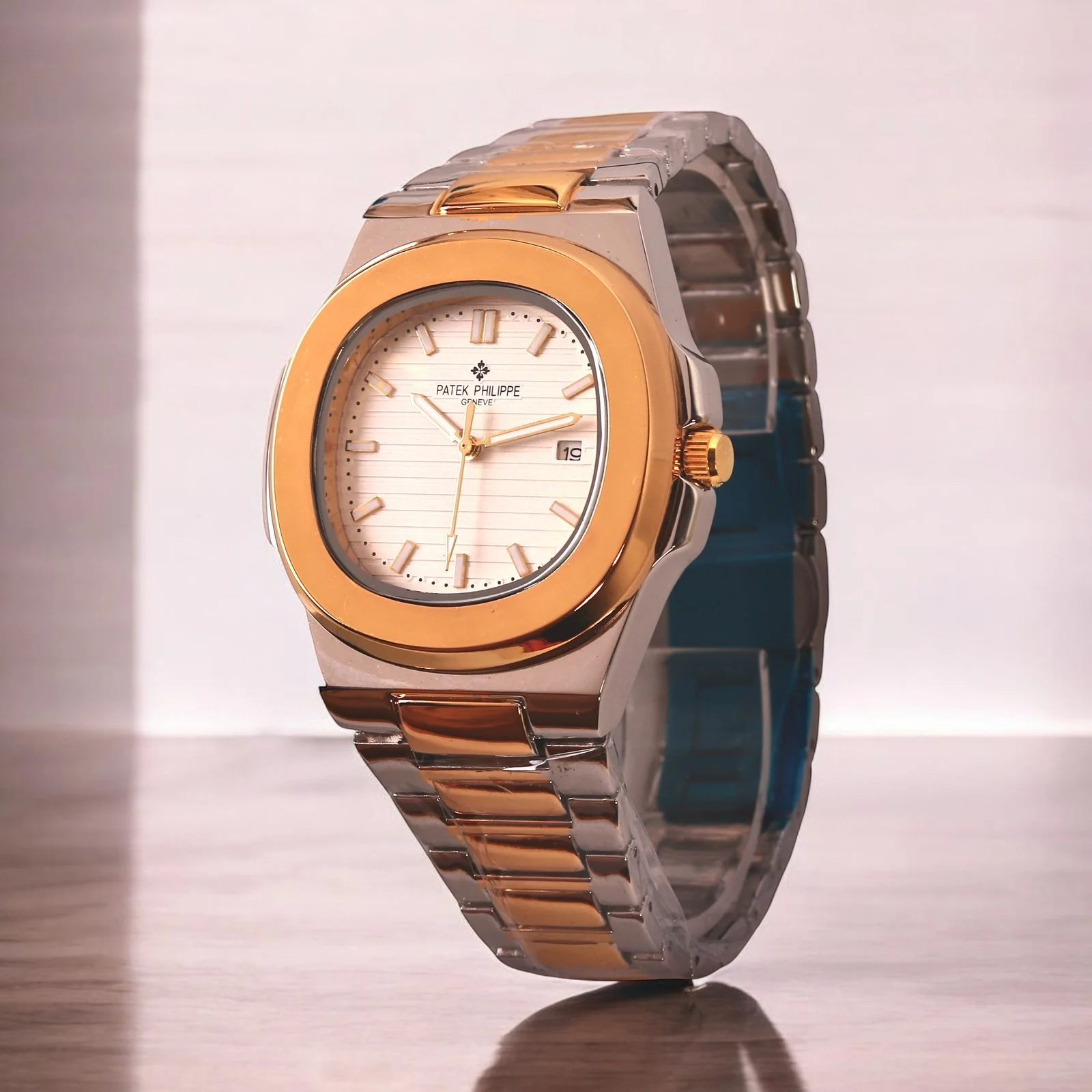 | Timeless Prestige, Redefined Experience timeless sophistication with the Patek Philippe Nautilus. Featuring a sleek black embossed dial and signature stainless steel design, this automatic timepiece blends luxury, precision, and status in one iconic silhouette. |
