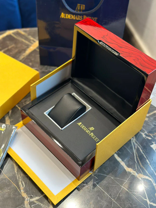 Crafted with the same attention to detail as the timepieces it protects, the Audemars Piguet Premium Box is a true embodiment of luxury and elegance. Featuring a sleek wooden exterior with a flawless finish, this presentation box reflects the brand’s commitment to excellence and refined aesthetics. Inside, a plush interior cradles the watch securely, ensuring both protection and a visually striking display.