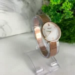 Curren 9020 women’s watch with a stainless steel gold-tone finish and a white dial. The watch face features Roman numeral hour markers at the 12, 3, 6, and 9 o’clock positions, and the brand name “CURREN BLANCHE” is printed below the 12 o’clock marker