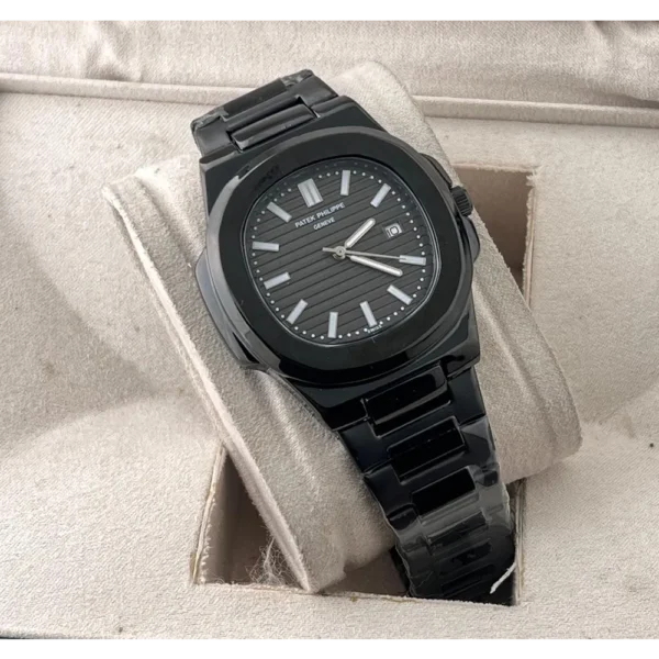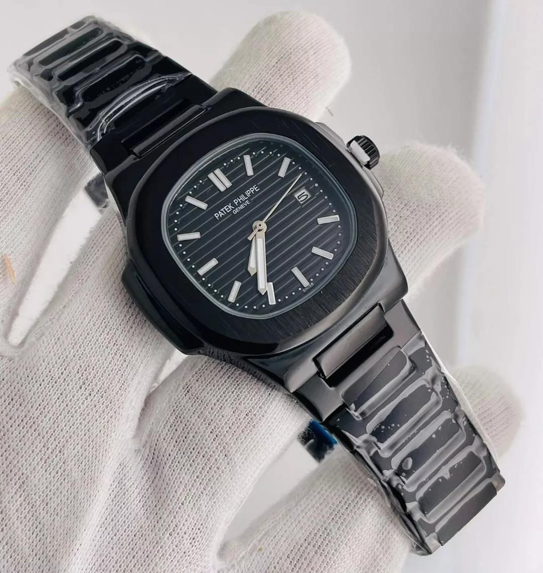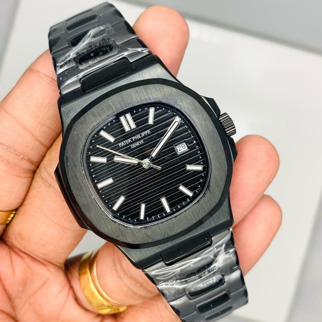 | Timeless Prestige, Redefined Experience timeless sophistication with the Patek Philippe Nautilus. Featuring a sleek black embossed dial and signature stainless steel design, this automatic timepiece blends luxury, precision, and status in one iconic silhouette. |