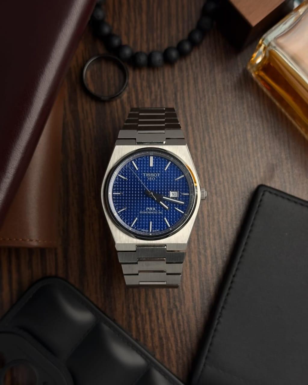 | The Tissot PRX Powermatic 80 is a Swiss-made automatic watch that combines vintage design with modern technology. Inspired by Tissot’s 1978 model, it features a sleek, integrated bracelet and a distinctive waffle-patterned dial, offering a stylish yet affordable alternative to luxury sports watches. |